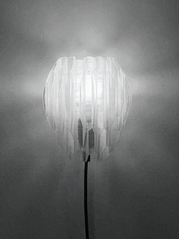 Taking inspiration from a beehive, Gradient Hive is an exploration of light through additive manufacturing. The honeycomb shaped layers diffuse light as it passes through the shape while simultaneously allows it to seep out vertically. This creates a multidirectional gradient of light that seamlessly hides the connections and original light source. The amber filament gives the piece a honey-like look.