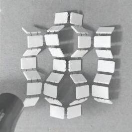 Although it was difficult to get evenly displaced heat through the use of a hairdryer to stimulate the shape memory alloy at an actuation temperature of 104°F (40°C), the SMA was still able to act properly as hinges between the panels.