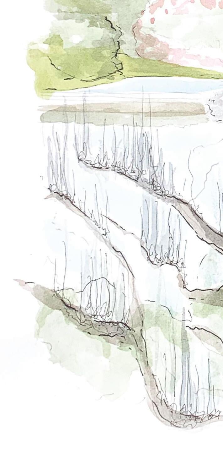 THOUGHTFUL DRAINAGE|PANAMA CITY RECEIVES 59.8 INCHES OF RAIN PER YEAR. CREATING “RAIN WALLS” ALLOWS THE WATER TO TRAVEL DOWNWARD WITHOUT UNSIGHTLY GUTTERS. IT CAN THEN ME CAPTURED AND REUSED.