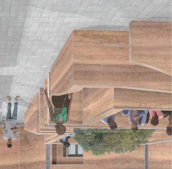 After being decimated by a civil war, the capitol of Liberia strives to be a beacon of hope and community by building a new national library. The key inspiration was Liberian agriculture to represent the resiliency of the country. The library program consists of a reading room, computer lab, meeting rooms, auditorium and childrenʼs reading area.