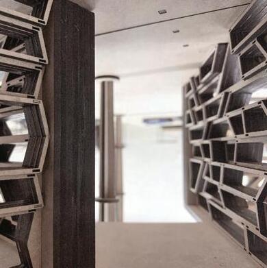 Virginia Creepers help shade in the summer and allow light in the winter. The bright seasonal colors paint the facade throughout the year er asonal r