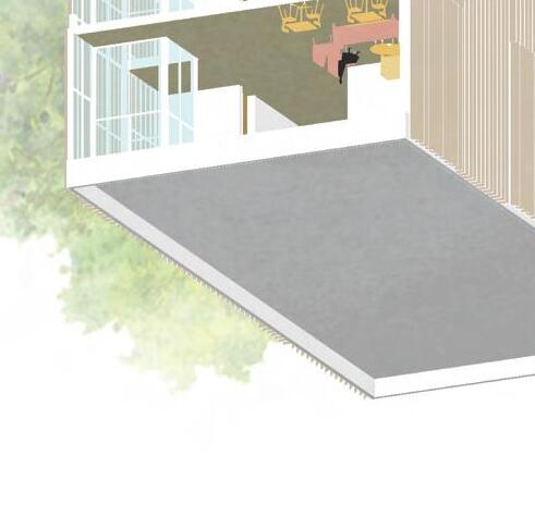 As this project had a focus on using heavy timber construction, it was implemented wherever possibly to try and push the boundaries of itʼs potential. Between the deep columns mentioned previously, there is a 3-ply sheet of CLT that acts in shear and is also the backbone of the window seat infill. The second floor is supported by 5-ply panels and the roof consist of carefully placed 3-ply panels that allow for skylight openings.