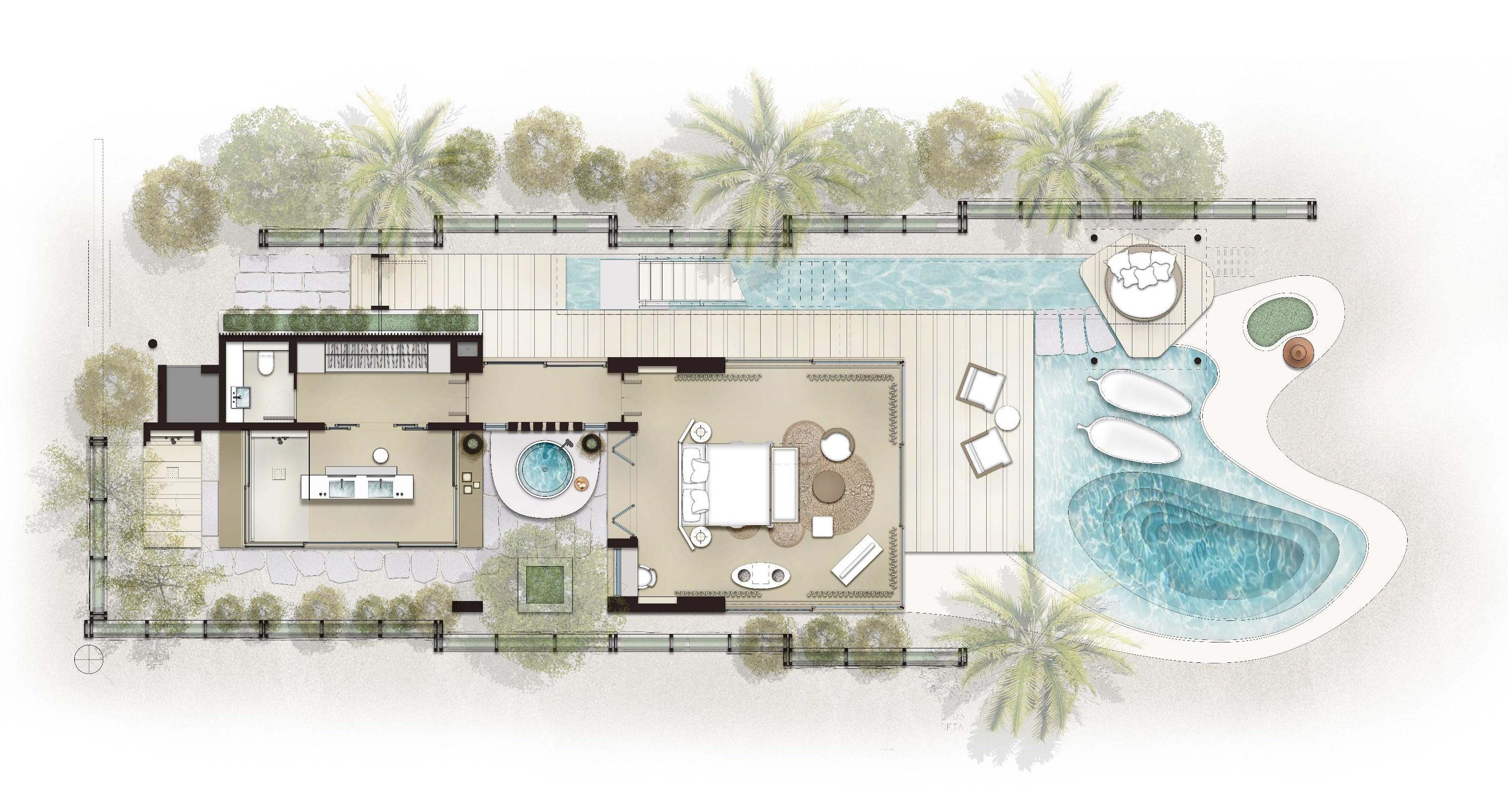 Seemless intergration between indoor and outdoor resulting in harmonious relationships with nature, all starting at the villas entrance, where layering plays with light, blurring the boundaries