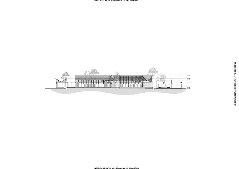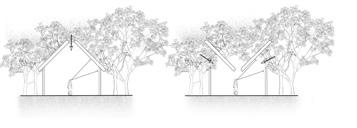 Fig 5b- The inverted roof profile frame the foliage and allow filtered light to permeatinng within the space