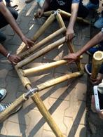 A mixture of natural materials is poured into this formwork. The mix is compacted by tamping till it is sufficiently strong. After the wall is completed, the formwork is removed.
