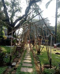 The Jetvana Centre is a bricolage of locally sourced and recycled materials. The design centers on the revival of local artisanal knowledge, technologies, and skills, working with communities to develop the capacity to shape their own habitats using their own methods. Its materiality and construction tell a story of context, tradition, and history through an embodiment of local knowledge and labour.