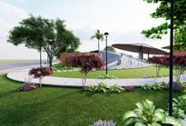 View of the Entry towards Amphitheatre Adjoining the footpath, the landcsape smoothly creates a branch for a person to