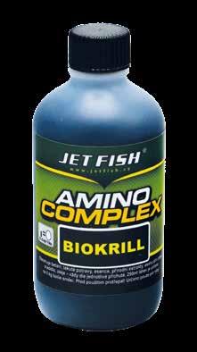 Při sestavování těchto complexů před lety jsem chtěl kaprařům ušetřit všechny ty nákupy velkého množství lahviček s různými ingrediencemi. Aby vaše nástraha byla opravdu dobrá, musíte do ní přidat betain, CSL cornmino, bioamino, PPC amino, liquid liver, tekutý rybí protein, GLM extrakt, játrový extrakt, esenci, rybí olej, olej z tygřího ořechu, esenciální olej, sladidlo atd. To všechno navíc musí být dávkováno v ideálních poměrech, aby nástraha byla co nejúčinnější. Mojí snahou bylo ulehčit kaprařům tuto práci, ale zároveň i ušetřit peníze, protože zakoupené přísady nikdy nespotřebujete celé a doma pak máte velké množství zpola plných lahviček. Namíchal jsem tedy tyto complexy podle těch nejúspěšnějších receptur. Vše je tak v ideálních poměrech připraveno pro váš maximální úspěch. Obsah 250 ml lahvič ky je přesně určen na 5 kg sáček boilie směsi. Dávkování complexů je 4 - 6 ml na jedno vejce. Pro krátkodobé vý lety použijte 6 ml, pro dlouhodobé 4 ml. Pokud nechcete experimentovat, používejte střední dávkování 5 ml při každé příležitosti. Nyní je tedy vše velmi snadné. Pro váš úspěšný lov stačí pouze zakoupit sáček směsi a k tomu jen jednu jedinou lahvičku - amino complexu. Rozklepnout vejce, přidat amino complex, vyválet kuličky, uvařit a pak už se jen věnovat lovu kaprů. Od uvedení na trh se amino complexy staly velmi oblíbené a kapraři okamžitě poznali, jak jsou pro ně výhodné.