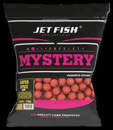 Letos po několika letech přinášíme v řadě Mystery novou příchuť squid-spice. Tato kořeněná esence ukázala při testech obrovskou účinnost. Unikátní kombinace olihňové a kořeněné esence funguje na kapry doslova magicky. Hodí se jak pro běžné rybaření tak i pro závodní rybolov. Funguje skvěle na všech typech vod po celý rok. Při sestavování této řady boilie šlo především o vytvoření nejrychleji fungující nástrahy na krátkodobý a závodní rybolov. Výsledky při prvním testování předčily naše očekávání, a to i na vodách, kde kapři nereagují běžně na boilies úplně rychle. Dosáhli jsme fantastických úlovků na pro chytávaných těžkých svazových vodách, kde už jsou kapři opatrní. Boilie je sestavené na bázi rybích produktů jako jsou rybí moučky, rybí rozpustné proteiny, mořské extrakty extrudované ptačí zoby a dále větší množství tekutých mořských potrav. Za ty roky, kdy boilie Mystery nabízíme, si získalo obrovské množství příznivců, kteří na ně dosáhli skvělých úlovku. Toto boilie způsobilo na hodně vodách doslova revoluci a podařilo se na ně chytit ryby, které se běžně nelovily. Nabízíme ho ve dvou verzích. Jedna je silně koncentrovaná, takzvaně nabušená, která obsahuje vysoké množství extraktů tekutých potrav a esenci pro atraktivní a rychlý chytací účinek. Toto boilie nabízíme v 250 gramovém a 1 kilogramové balení. Dále jsme připravili 3 kilogramová balení, která jsme speciálně upravili k tomu, aby se boiliem mohlo krmit masivněji. Tzn. že jsme přidali naši směs Premium a lehce snížili obsah tekutých potrav a esencí. Díky tomu je boilie vhodné pro masivní zakrmování. Boilie se ve vodě lehce omílá a uvolňuje atraktory do okolí. Tím láká ryby k záběru a dokáže je udržet dlouho na krmném místě. Několikrát se nám stalo, že ryby doslova propadly krmnému šílenství a neustále se vraceli do krmného místa pro další návnady.