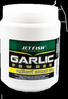 Prášek z česneku. Má výraznou chuť a vůni a je vhodný do všech typů boilie směsí. Vynikající také pro zasypání pelet, method mixů a partiklů.