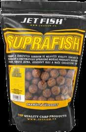 Řada Suprafish původně vychází z řady Legend Range. Toto boilie ale bylo tak oblíbené a žádané pro svojí skvělou účinnost, že jsme z něj vytvořili vlastní řadu. Boilie Suprafish prošlo v loňském roce velkou změnou, a to včetně několika novinek. V kilovém balení jsme připravili doslova nabušenou verzi suprafishky, do které jsme kromě stávajících surovin přidali i další mořské produkty, jako jsou olihňové moučky, krillové moučky, chilli extrakt a ještě zvýšili dávku tekutých potrav a esencí. Jedná se tak o velmi silnou a atraktivní nástrahu. Boilie bylo inovované i co do chuti. To znamená, že do příchutě Squid/Scopex jsme přidali sladidlo a nástraha tak dostala sladkou rybí chuť. Do boilie Oliheň jsme navíc přidali olihňovou moučku a boilie je slané. Stejně tak novinka Krab/ Česnek obsahuje kořenící přísady a rovněž je slané. Do příchutě Chilli/Krill jsme samozřejmě přidali krillovu moučku a chilli extrakt, díky kterému je boilie silně pálivé. Toto kilové balení navíc budeme nabízet v průměru 20 a 24 mm v celoroční akci 2 + 1 sáček zdarma. V praxi to znamená, že si zakoupíte 3 sáčky v balení 1 kg a zaplatíte pouze dva. Velká změna proběhla i ve větším čtyř kilovém balení. Při dnešním trendu rybářů více krmit, ale za ekonomičtější cenu jsme smíchali směs Suprafish s naší úspěšnou směsí Premium a v boilies snížili dávku některých tekutých potrav a atraktorů. Boilie je tak vhodnější k masivnějšímu krmení, a to za velmi příznivou cenu. I když čtyř kilová řada je ekonomičtější verze, stále se jedná o boilie se silnou rybí příchutí. Tato řada je ideální pro větší krmné kampaně na všech typech stojatých i tekoucích vod.