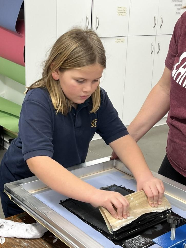 Learning how to screen print during one of our Discovery Day sessions.
