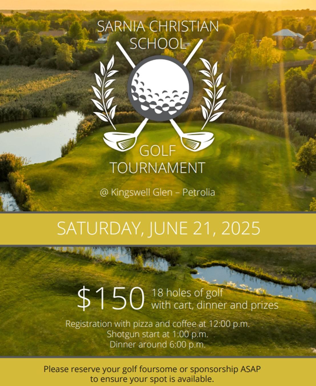 To sponsor or register your foursome, please email: golf@sarniachristian.com
