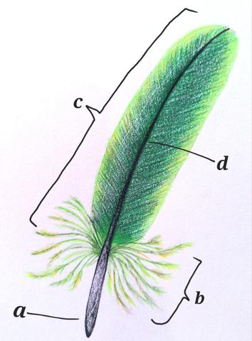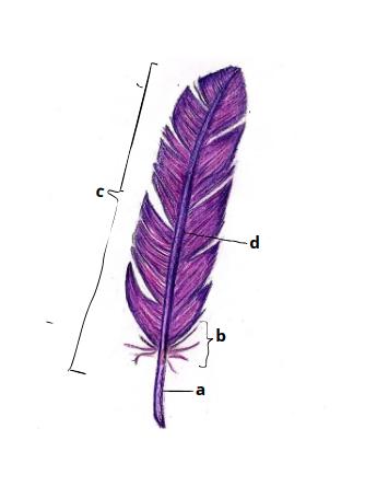 Nota: a. Cálamo, b. Plumón, c. Vexilo, d. Raquis.