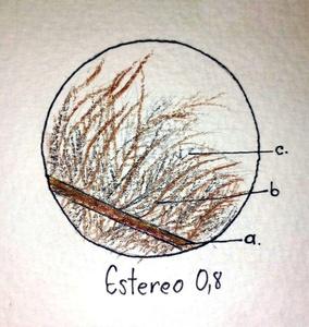 Figura 8. Observacion de barbas y raquis en estereoscopio en 0.8x.