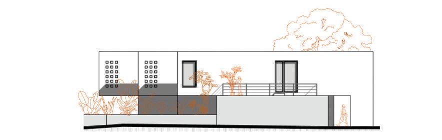 Roof slope that becomes the facade on the 3rd floor is designed to respect monumentality of the Memorial House building. The slope of the building is at an angle of 51 °, and it is designed so that the lower edge is at a height of 10.90 m where the canopy of the existing adult greenery ends.
