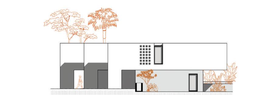 Parking is provided near the complex in the shade of existing trees at an elevation 12m lower than the elevation of the nearest ground floor.