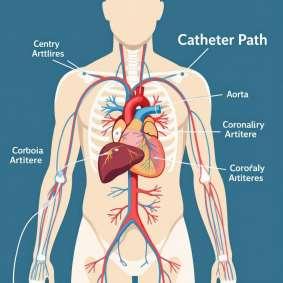• The catheter is carefully guided to the area of interest (e.g., the heart's arteries).