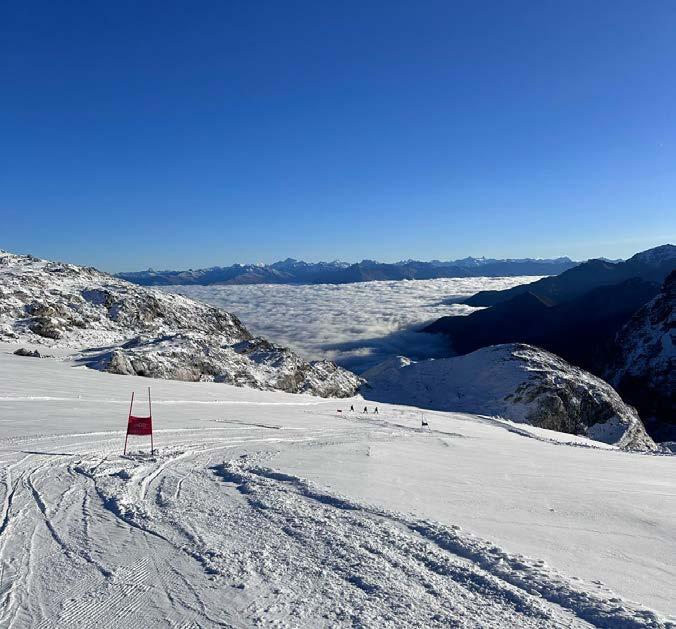 Im Oktober ging es dann weiter nach Saas-Fee, wo wir auf dem Gletscher unsere Technik verfeinerten und intensiv an unserer Rennperformance arbeiteten. Hans legte grossen Wert darauf, dass wir unser Tempo und unsere Linie auch unter anspruchsvollen Bedingungen konstant halten. Das Training wurde durch schwierige Wetterbedingungen wie Wind und Nebel erschwert, was uns herausforderte, trotzdem konzentriert und prĂ€zise zu bleiben. Trotz dieser VerhĂ€ltnisse begannen wir bereits mit den ersten ZeitlĂ€ufen, um unsere Fortschritte unter Rennbedingungen zu testen und uns Schritt fĂŒr Schritt auf den Wettkampfmodus einzustellen. Diese Erfahrung machte uns widerstandsfĂ€higer und bereitete uns optimal auf unvorhersehbare Situationen im Wettkampf vor.