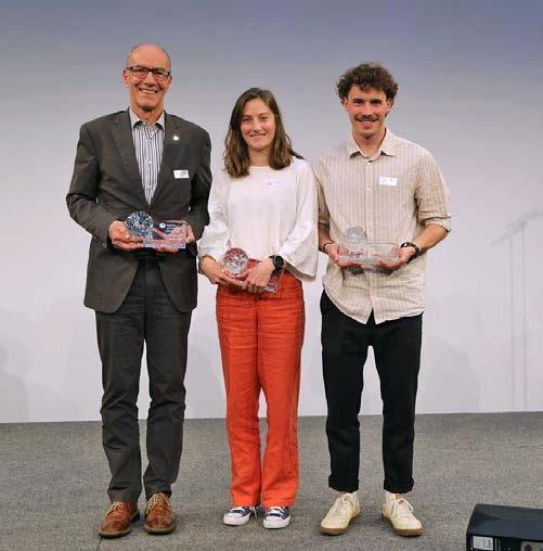 âą Leonz Eder posiert mit seinem Lifetime Award neben Eliane Deininger und Nicola MĂŒller.