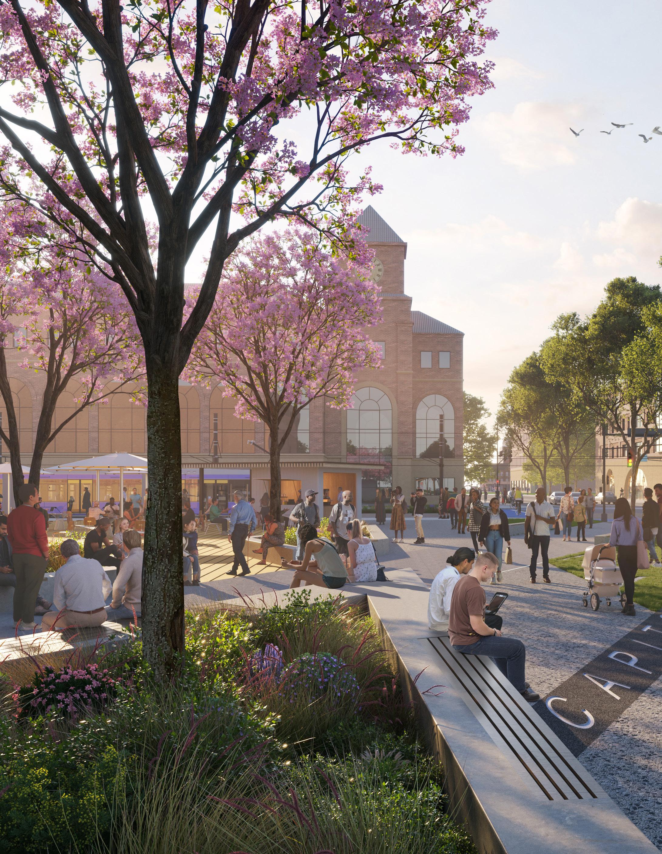 Plaza with lush planting. Lamar Johnson Collaborative, theljc.com/projects/gateway-plaza-2.