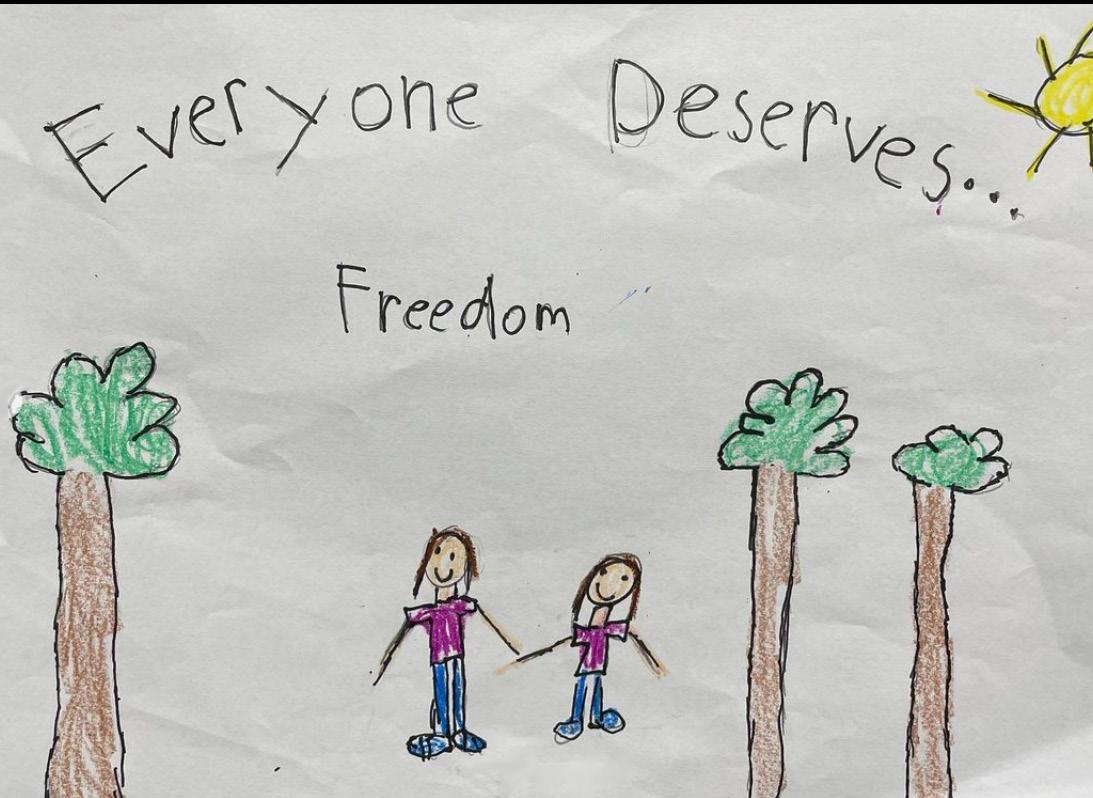 The students were tasked with thinking of a basic human right that they believe everyone deserves but not everyone in the world currently has. The First Grade team loved the project so much that they kept it even after Bri moved on from teaching art.
