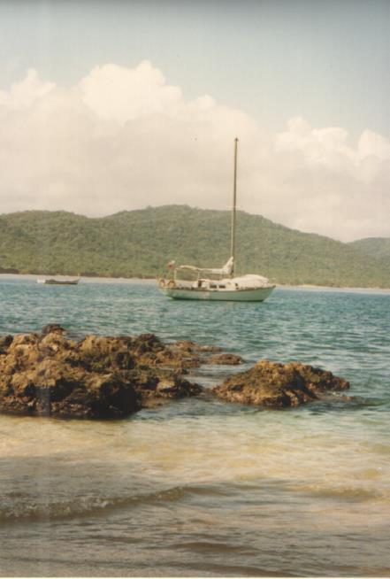 mindenki, aki a hajóútra jött. Másnap korán reggel papám és bátyám kimentek megnézni a kikötőn kívül lehorgonyozott vitorlást, a Sidartat, ami apámé volt és újkorában tökéletesen megfelelt ilyen hosszú utazásokra, mint amire mi is készültünk.azonban ma már nem volt vízzáró és motor nélkül egy napba került volna kijutniÉdesanyámék kiskorukban sok hétvégén és nyáron mulathatták az időt a Tortugán ahova mi is készültünk eljutni. Csodálatos gyerekkor lehetett, amit én is megláthattam. A hajóút nagyon hosszú, fél napba tellett és hánykolódó, hiszen a hullámok a száraz föld felé tarajosak így minden egyes alkalommal megdobta a hajó orrát, aki nem volt ehhez hozzászokva, mint én is, azonnal tengeri betegséget kapott és kínszenvedés volt az út, a körülbelül 150 kilométer, amit meg kellett tenni a hullámok között, mire végre a kisebb szigetek ölelésébe értünk és a hullámok megszűntek. Ekkor tudtam először a fedélzetre jönni, mikor felsétáltam olyan látvány tárult elém, amiben még sosem volt részem, trópusi szigetek, gyönyörű szép napsütés, kristálytiszta, kék tenger, a tengerbe óriási medúzák, barna kockák a hátukon, tengeri halak és korallok a hajó alatt. Lassan araszoltunk a sziget felé, amit Patkó szigetnek hívtak és a legmegfelelőbb hely volt a kikötésre, hiszen a széltől és a hullámoktól védve volt a belseje. Magán a szigeten szinte semmi nem volt homokból állt az talaj magassága nem lehetett több két és fél méternél, alig pár növény bokrocska és gaz nőtt rajta. Párszáz méter lehetett a hosszúsága és a szélessége maximum pár tíz méter, volt a sziget kellős közepén egy halászkunyhó, ami uszadékfából és a nagyobb szigetről, a Tortugáról