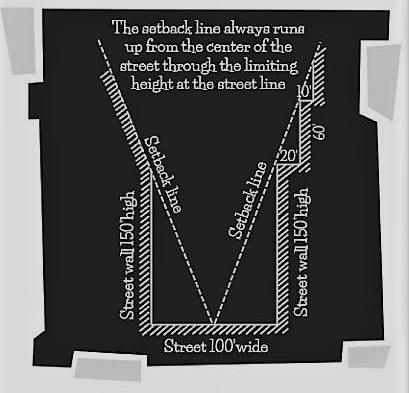 As cities came to fill with skyscrapers in the early 20th century, planners turned their interst from the layout and footprint of neighborhoods at street level to the volume of buildings as they rose towards the sky.