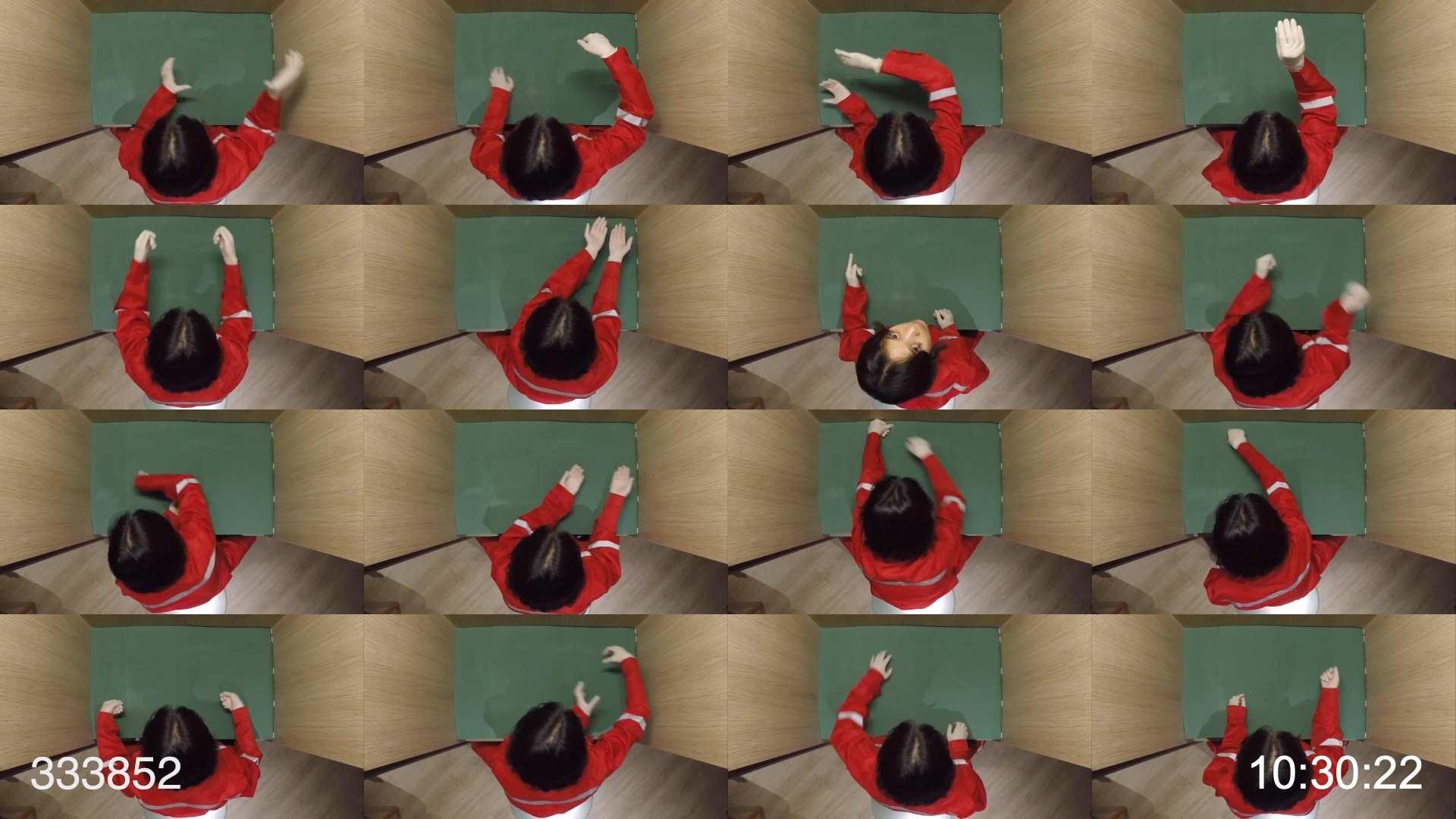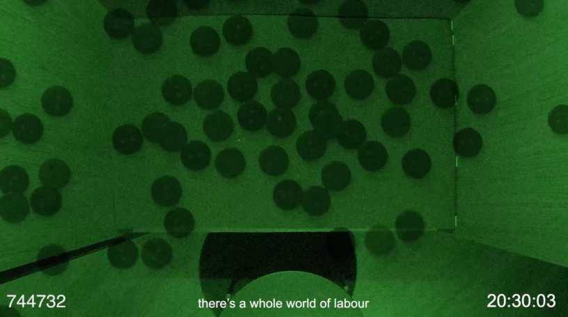 Fig 8 : Video still from Performance Intervention Test I, created to engage the audience in experiencing repetitive tasks under surveillance