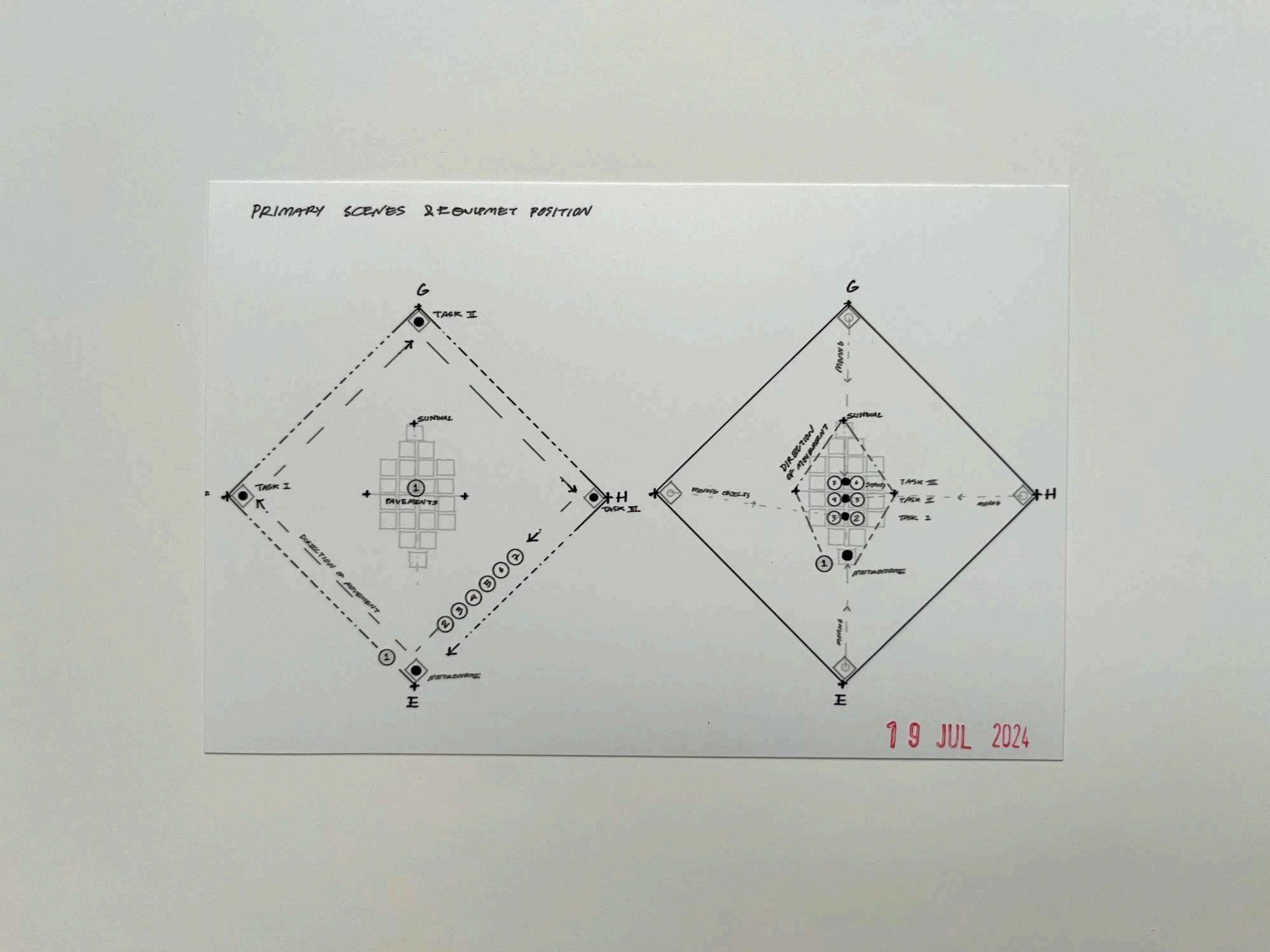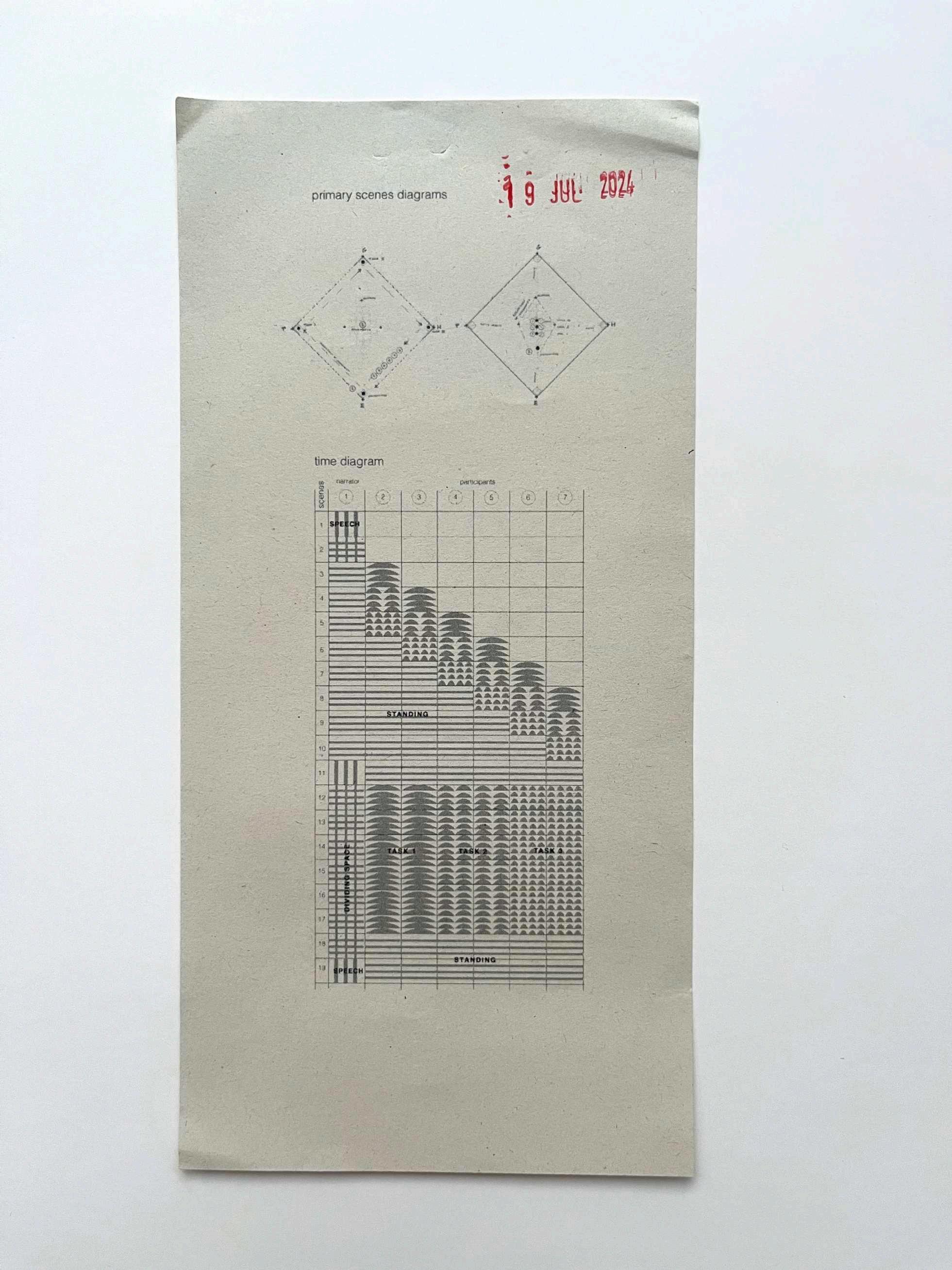 Fig 11: Primary scenes and equipment positioning diagram in the Performance Intervention Prototype: When Time Becomes a Commodity, critiquing space, time, and motion studies in Taylorism, which discusses the relationship between space reduction and increased productivity.