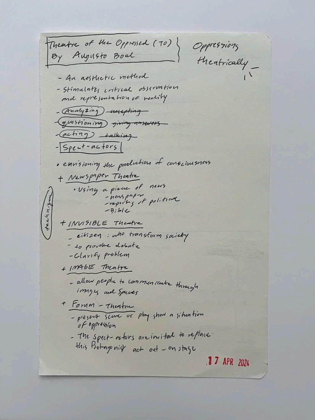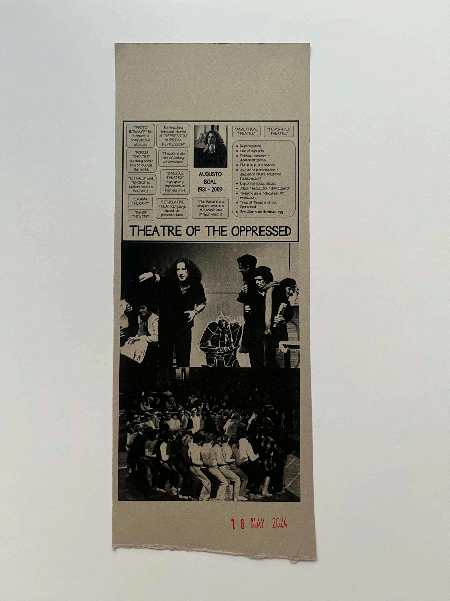 16: A document studying and analysing Boal’s techniques in the Theatre of the Oppressed