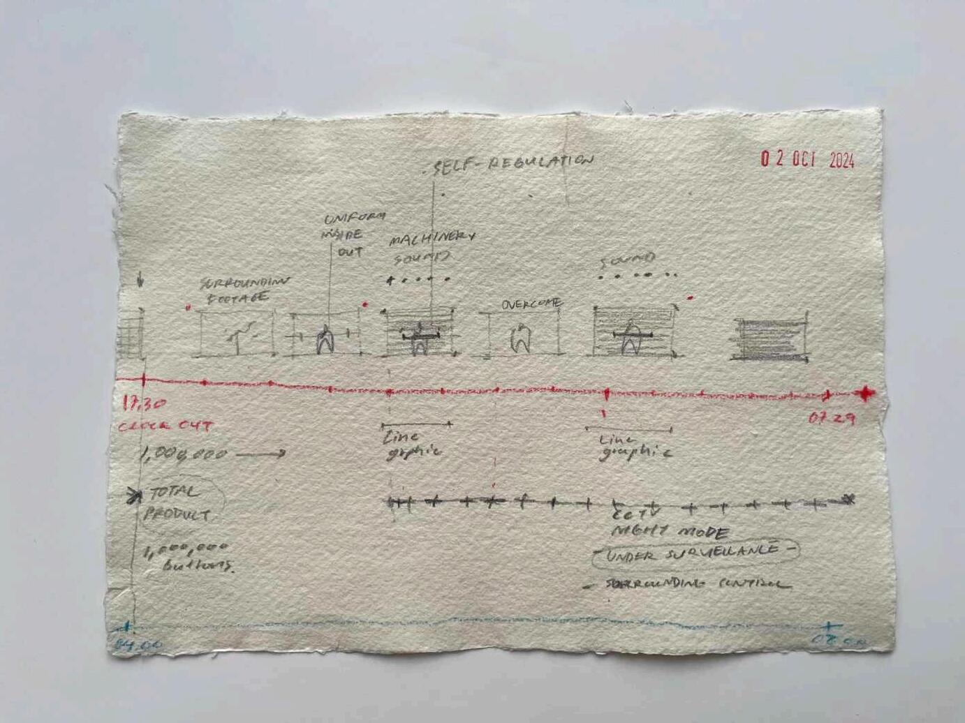 Draw the Lines explores this alienation inside a Thai button factory's production line as well as its internalisation in workers’ personal lives. The project critically examines how factory processes reshape human movements—once organic and natural—into rigid, monotonous, and linear patterns focused solely on efficiency (Ingold, 2007). It does so by developing a form of situated durational performance practice manifest in a tripartite series of works which expose and enact these experiences.