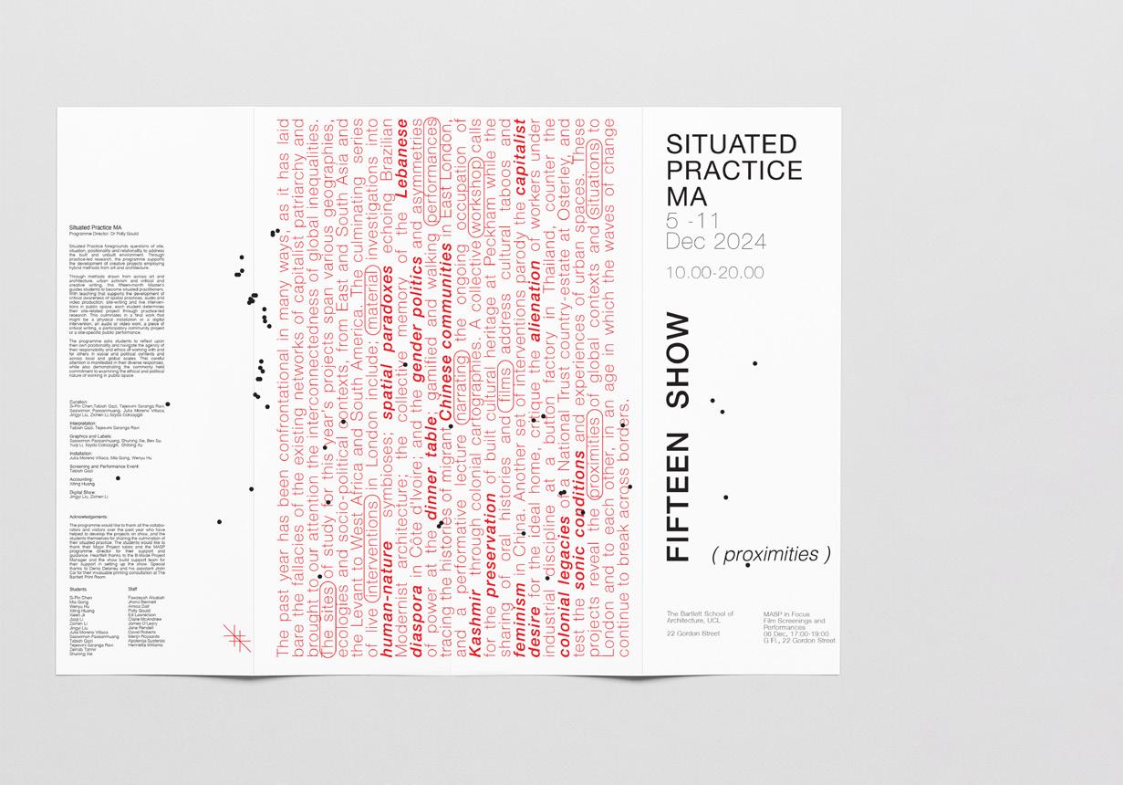 Exhibition curation team and graphic design direction for the annual showcase of the MA Situated Practice programme.