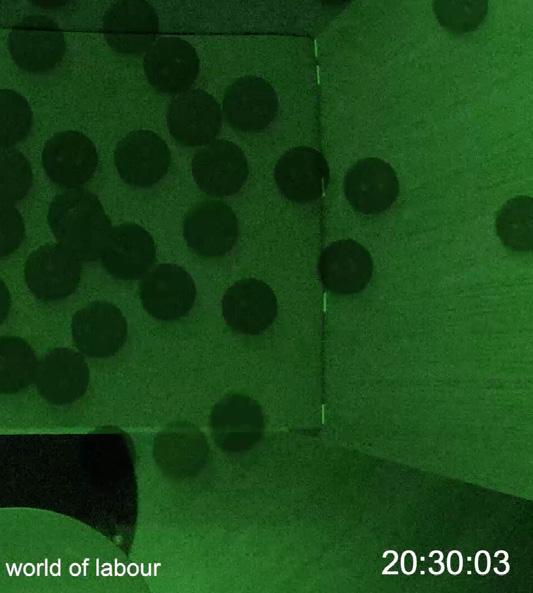The Unbuttoning is an 8-minute cut of durational performance segments interwoven with process-oriented experiments and factory footage, revealing how systems of urbanism, spatial control, time discipline, and production efficiency become internalised in workers’ personal lives long after they leave the factory floor.