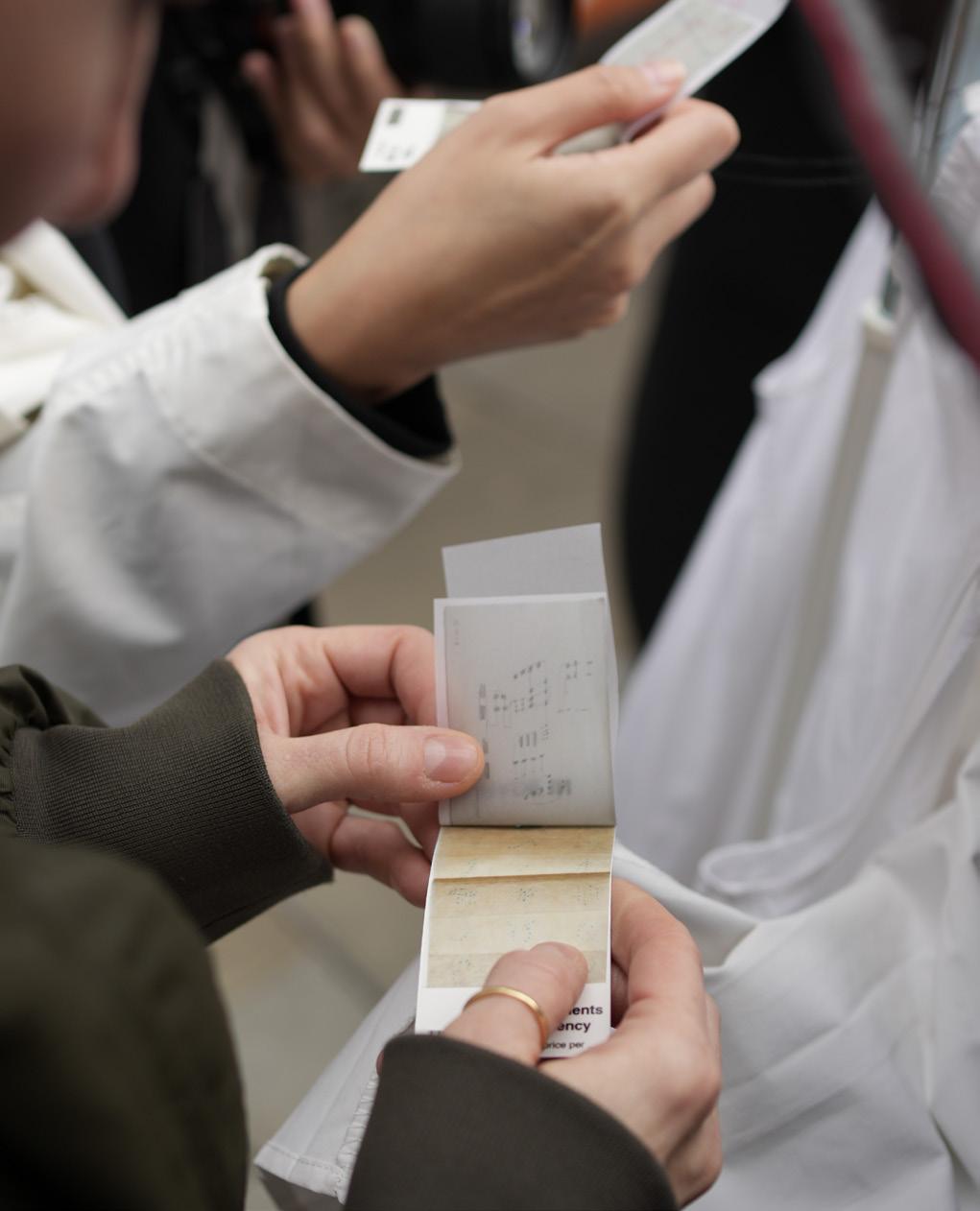 Auxiliary Materials, part of the Draw The Lines project, unfolds hidden labour in the fastfashion industry. Ten garments were fitted with custom-designed labels that replaced price tags with real data from the brands’ supply chains — detailing the number of factory partners, employee counts, and sites of origin, etc., rather than monetary cost.