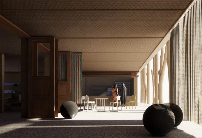 The project centers on maternal security, creating a safe and trustworthy environment through architecture that harmonises with Senegal’s local culture and climate. Organised in three sections—a welcoming public reception, a communal Learning Center with wards, and a secure delivery area—the design transitions from openness to privacy, fostering comfort and confidence. Using locally sourced materials like straw and earthen walls, the building ensures natural ventilation and thermal comfort.