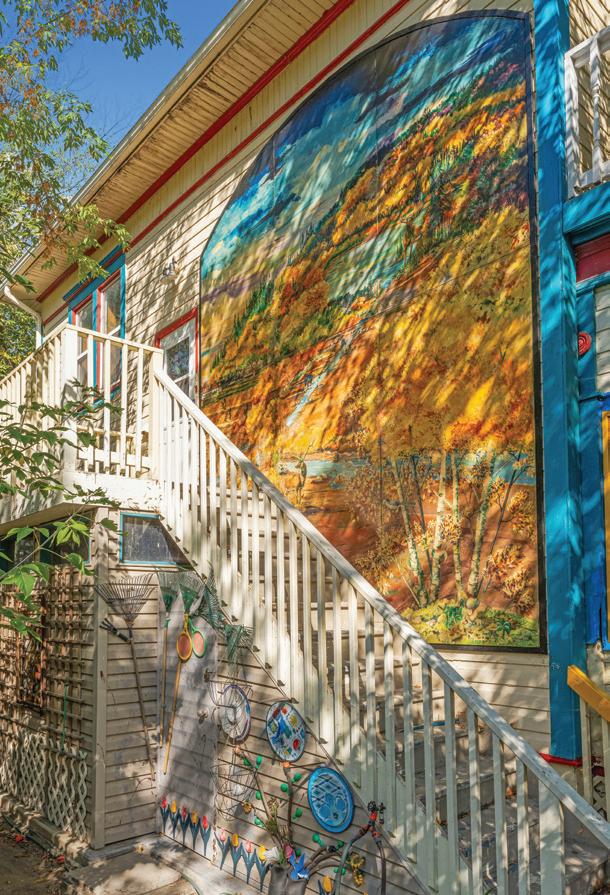 One of the landscape murals Cecilia originally painted for Centre Mall now graces the east side of the house.