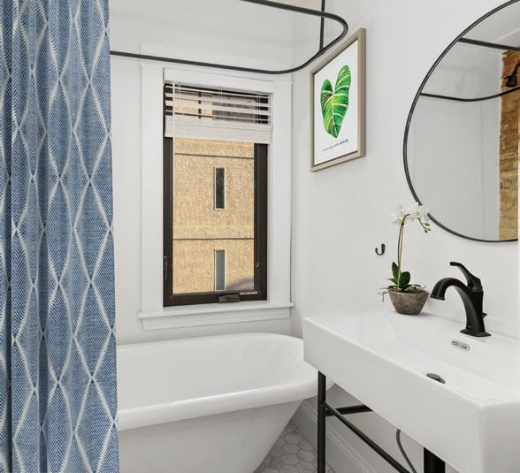 “The frames are new but the grills and the single-hung style, much more common back in the day, make them fit with the era of the building and the brick exterior,” says Lisa. “Inside, Heather’s choice of the espresso frames absolutely pop against the white walls and trim on the interior,” she adds. “That gives the Block an updated and beautiful look on the exterior without losing any of that 1910era nostalgia and charm.”