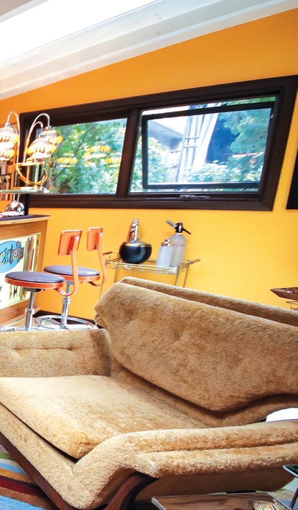 “Even if we don’t have a cocktail, we use it to cool down in, read or have a nap on that awesome sofa,” Perry explains. “It’s the most utilized indoor space during the spring and summer months. In keeping with that Mad Men vibe, the couple has a bit of a tradition.