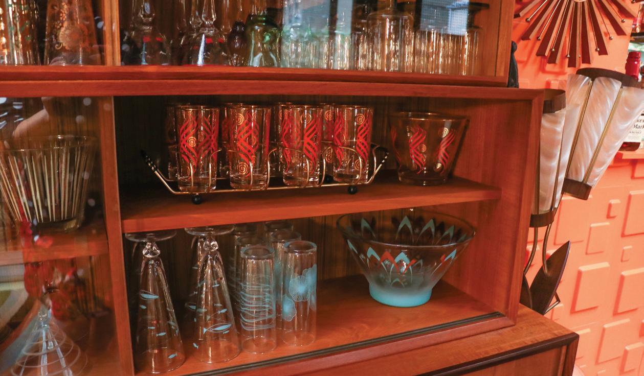 “Because we are in a very small market, we knew it would be tough to acquire items,” says Perry. Undaunted, they started searching locally, and checked MCM-specific websites. They collected slowly, resisting and usually avoiding impulse buys.