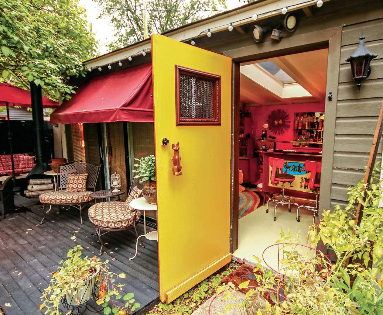 Not all went according to plan. “Although the shed is insulated, we bought a vintage Preway fireplace,” says Perry. “We talked with our insurance agent, and we’d have to make extensive modifications. So now the fireplace gives some ambiance to the deck.” Because the shed has no utilities like water or heat, it’s still insured as a detached garage.