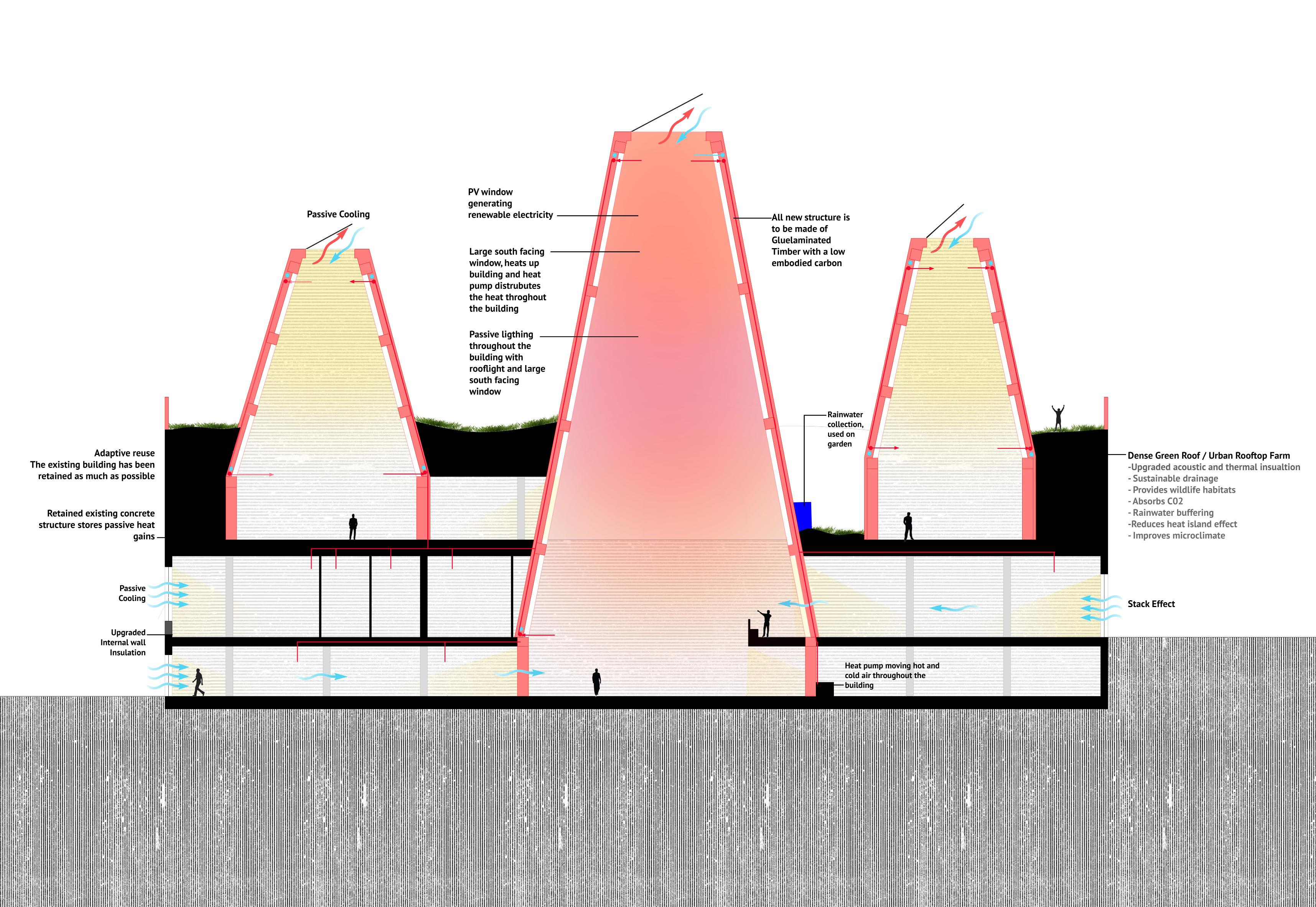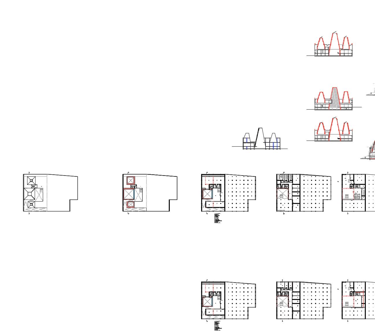GROUND FLOOR PLAN FIRST FLOOR PLAN SECOND FLOOR PLAN KEY: RED- NEW STRUCTURE 1. Services/plant 2. Stores 3. W.C. 4. Restaurant 5. Kitchen 6. Offices 7. Entrance 8. Lounge 9. Market 10. Day Care 11. Class room 12. Lecture Theater 13. Garden 14. Study 15. Rooftop Farm