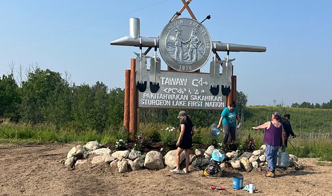 grow pride in their community, while showcasing it to visitors, the province, and the rest of Canada. With teamwork, perseverance, and Chief Longjohn’s vision, the dream is being realized. Naming themselves the Bloomers are the volunteers at the heart of Sturgeon Lake First Nation’s Communities in Bloom projects. Along with staff and summer students, the Bloomers have dedicated hours of sweat equity to turn the community into a beautiful sight to see.