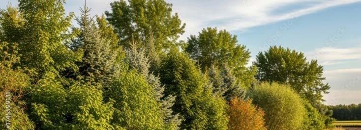 2. Density: Compared to a traditional shelterbelt, an ecobuffer has a much higher density of plants due to the recommended spacing of 1 meter between plants and 2–2.5 meters between rows.