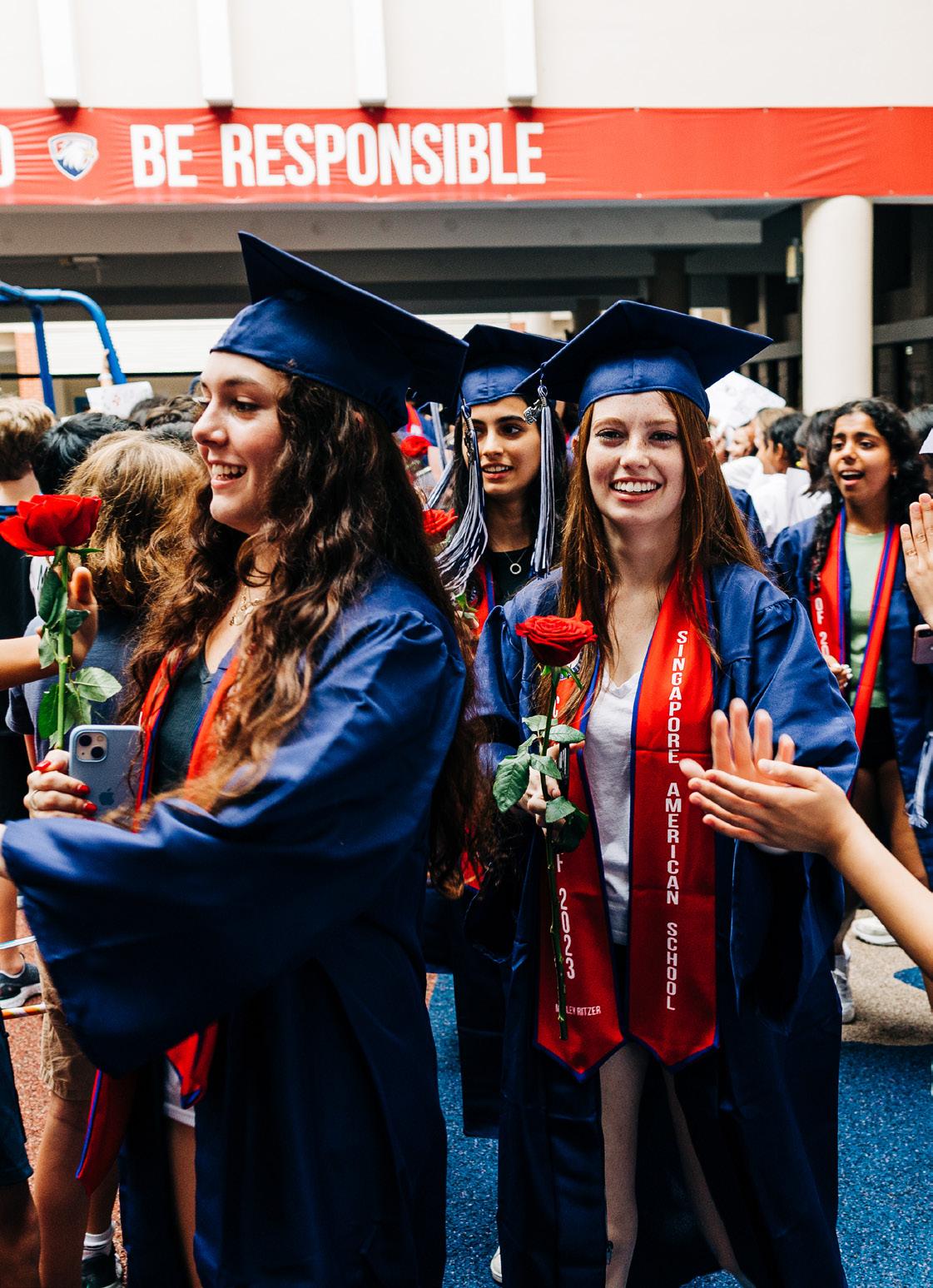 Having coped with pandemic restrictions for more than half their high school lives, the Singapore American School class of 2023 has developed our core values of compassion, honesty, fairness, responsibility, and respect, along with perseverance, flexibility, and grit. As seniors, they were able to return to more normal routines and embraced the many milestones of this pivotal year. We are so proud of our Eagles, who have distinguished themselves in the classroom, on the stage, in the art studio, in sporting competitions, and in service to others. Their focus, creativity, and enthusiasm will serve them well as they move on to new adventures.