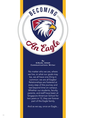 No matter who we are, where we live, or what our goals may be, we all have one thing in common: we are all Eagles! Relationships are fostered at every step of the journey and last beyond time on campus. Whether our students, faculty, parents, and staff have been at Singapore American School for two years or 12, they are forever part of the Eagle family. And as we say, once an Eagle...