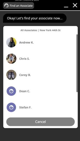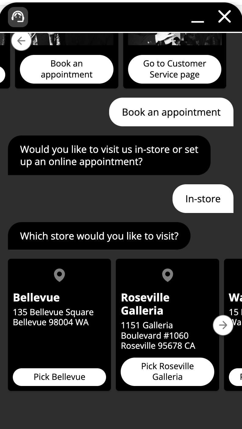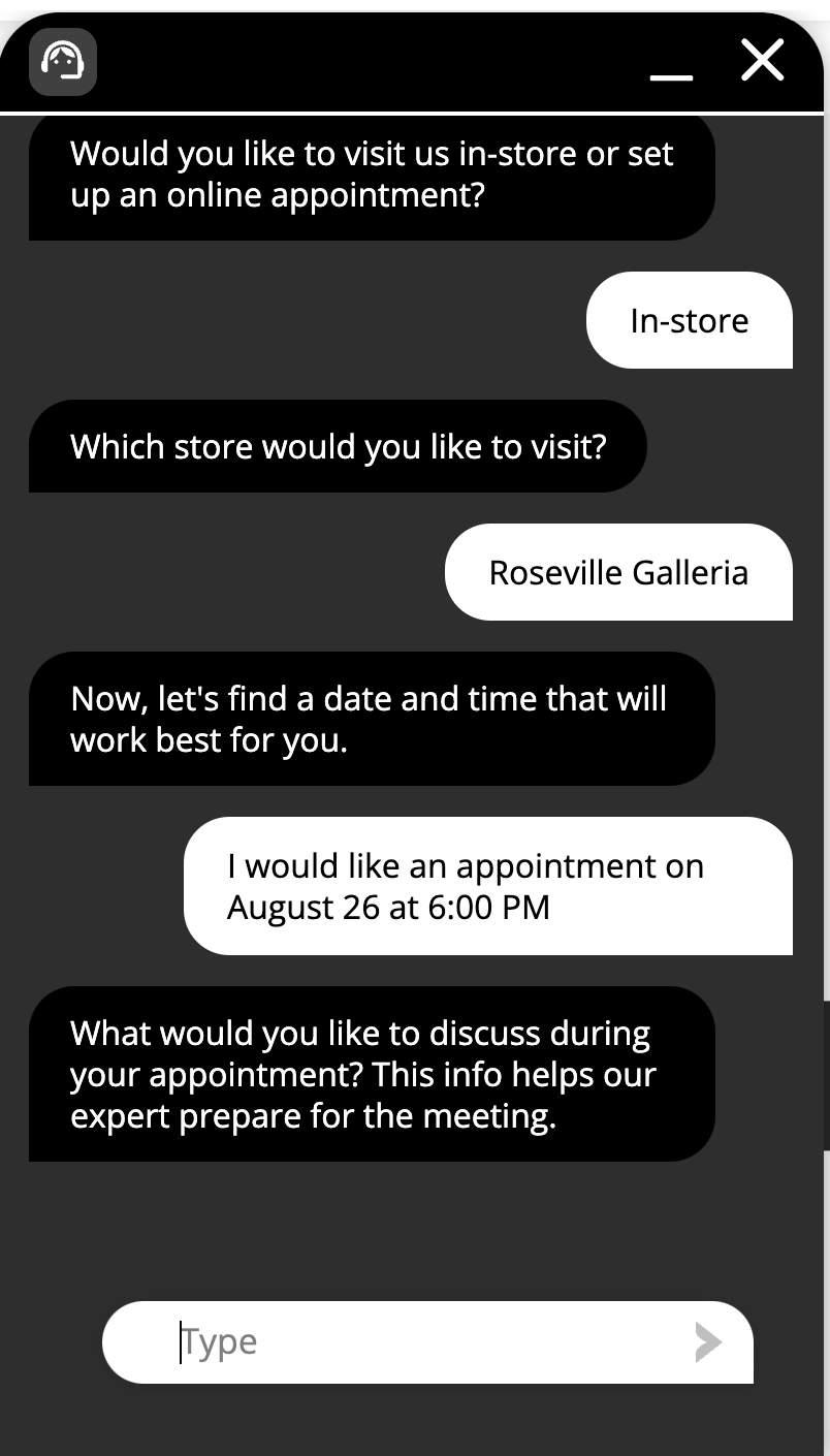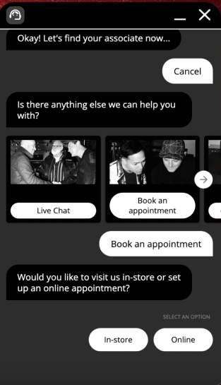 In the initial experience, the shopper has to fill a form to be able to live chat, book an appointment or email/ text an in-store advisors.