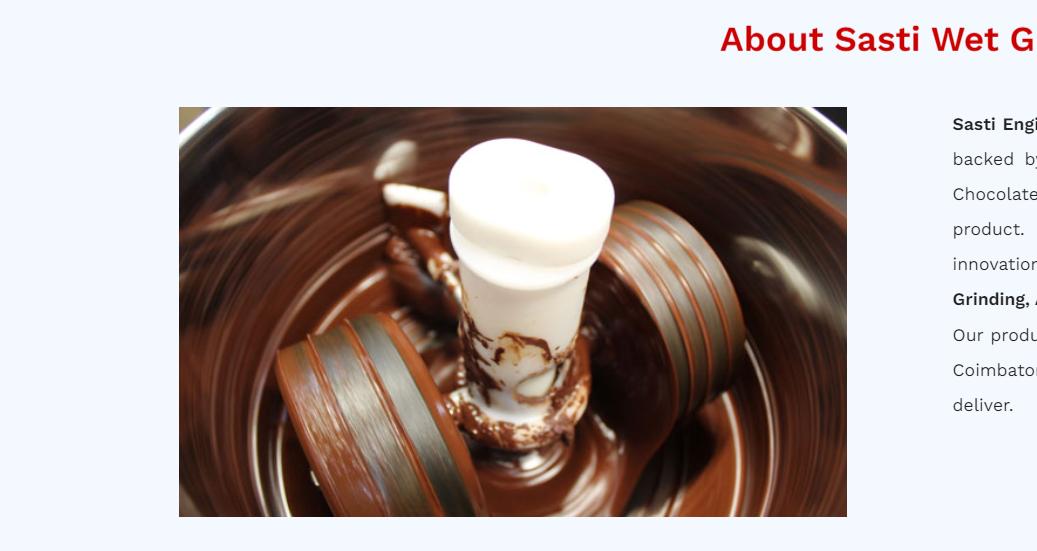Sasti Engineering was established in 2016 in Coimbatore, South India. The venture is backed by nearly four decades of experience. We launched our product line with Chocolate Melangers since we recognised that there was an acute need for the product. Apart from Chocolate Melangers, we have developed various design innovations in our products so that they can be used for Cocoa Grinding, Nut Butter Grinding, Almond Grinding, Tahini Grinding, etc.