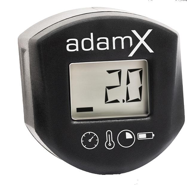 After twelve seconds of inactivity, the display will be switched off into Sleep Mode. After further 90 seconds, the unit will enter Deep Sleep mode to reduce battery consumption to almost zero. When the adam X is put back into operation, it will undergo a complete initialisation cylcle including pressure calibration.