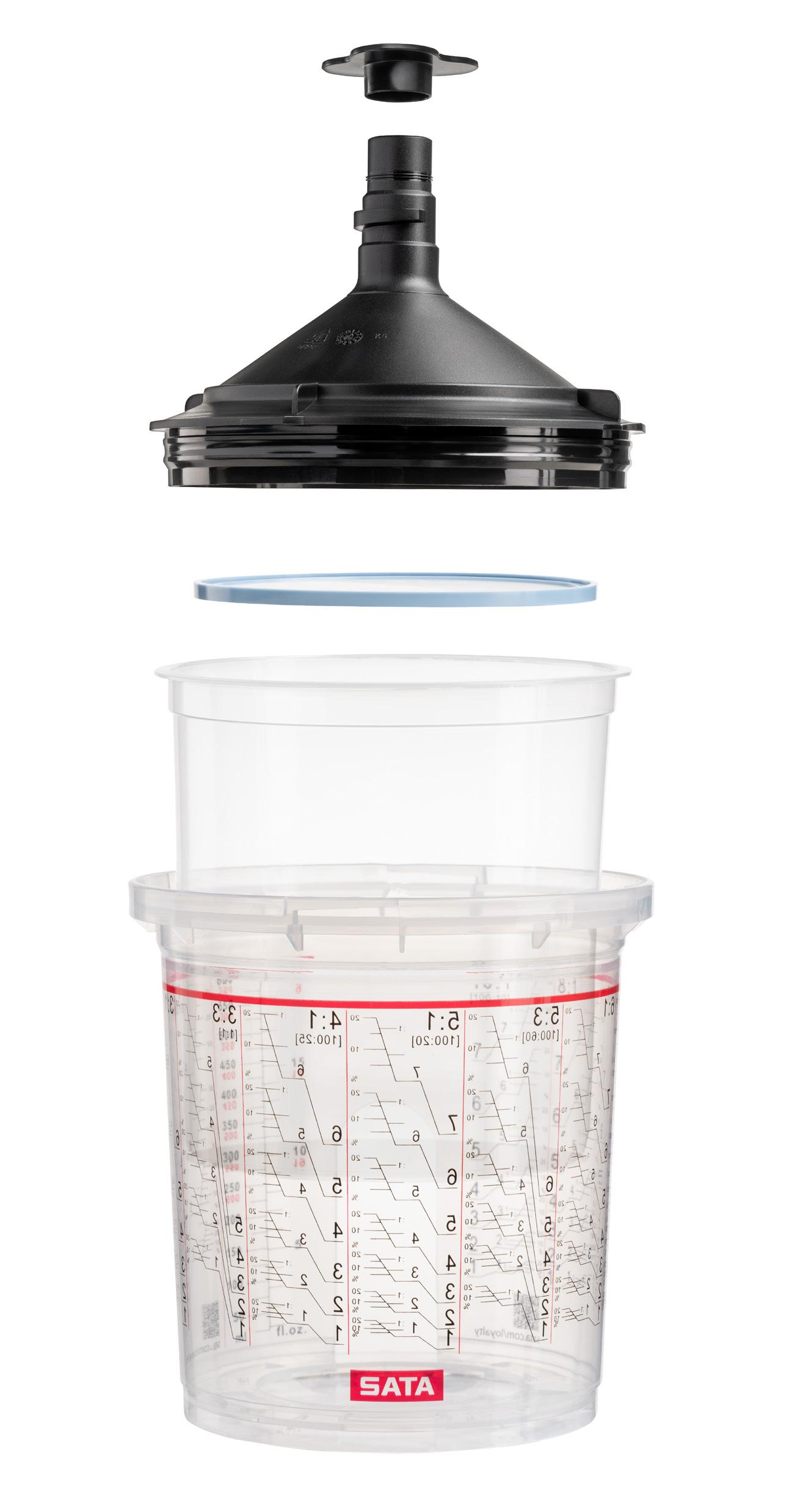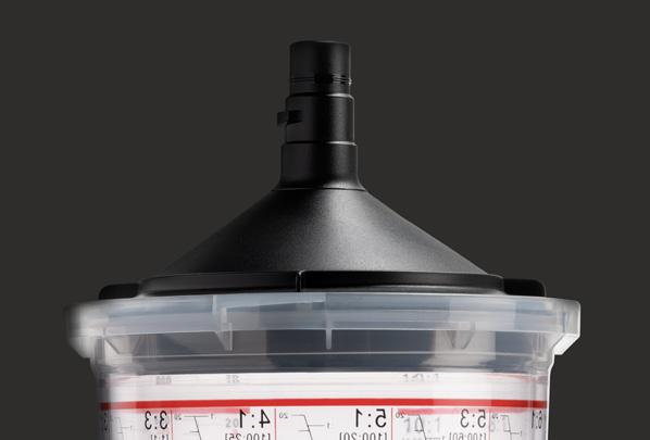 Typique de SATA : le système de graduation complet et détaillé. Éprouvé dans la pratique et précis. Une graduation inversée indique la quantité restante pendant l’application de peinture.